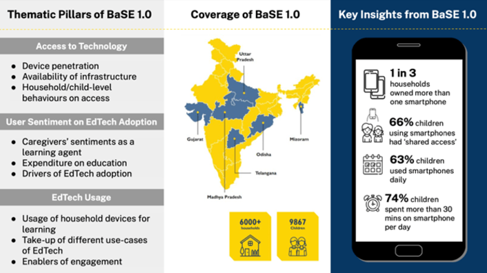 The first round of the BaSE survey was released in 2022, covering 6,000+ households and 10,000+ children from across six states in India. The survey findings not only provided interesting insights into EdTech sentiment and usage but also debunked common EdTech myths.