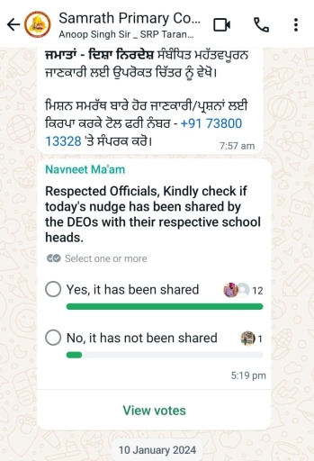 ● Byte-sized content: these were developed and shared daily in the form of images, short videos and reference notes to reinforce academic and administrative structures in the state. A wide WhatsApp community of teachers and officials facilitated this consistent communication. Last-mile delivery of these nudges to teachers was also sample-checked through monitoring visits, WhatsApp polls and phone surveys.