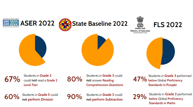 Punjab has over 26 lakh students enrolled in more than 19,000 state government schools, supported by over 1.2 lakh teachers. Foundational Literacy and Numeracy (FLN) has been a focus area in the state even before it became a national priority under the National Education Policy (NEP) 2020. The state has been implementing FLN initiatives under the aegis of the Padho Punjab Padhao Punjab Mission since 2008. The results of these persistent efforts were reflected in the National Achievement Survey (NAS) 2021, where Punjab emerged as the top performing state. However, multiple learning surveys highlighted the need for improvement in FLN competencies in the state.