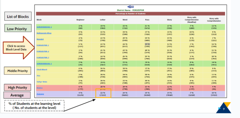 With one of the highest percentages of internet subscribers in the country, the Punjab state education department leverages technology at various fronts to gather data with respect to attendance, transfers, enrollment, school infrastructure etc. Keeping this in mind, the steering committee relies on existing platforms such as Tangerine mobile application, and ePunjab portal to facilitate real-time monitoring data for officials and to collect student assessment data respectively.