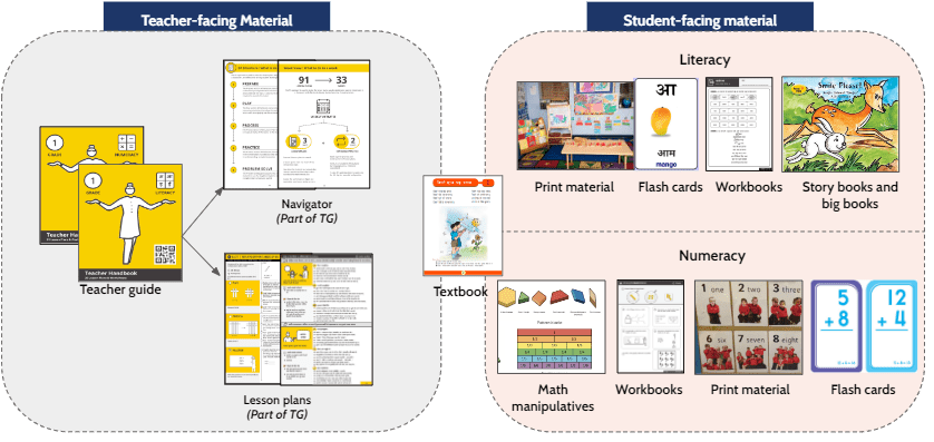 Connection: A teacher embarks on a scavenger hunt each day, trying to stitch multiple disconnected materials like textbooks and student workbooks. A teacher guide should explicitly link all the teacher and student-facing material. Daily learning objectives can act as one such primary key to link the TLM.