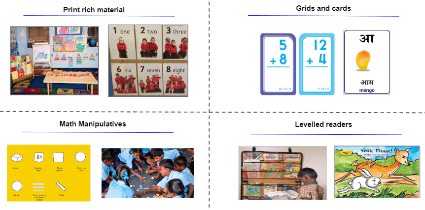 Right tools, also known as Teaching Learning Material (TLM), are a set of classroom resources that assist the teacher in delivering instructions and help students actively engage with learning.